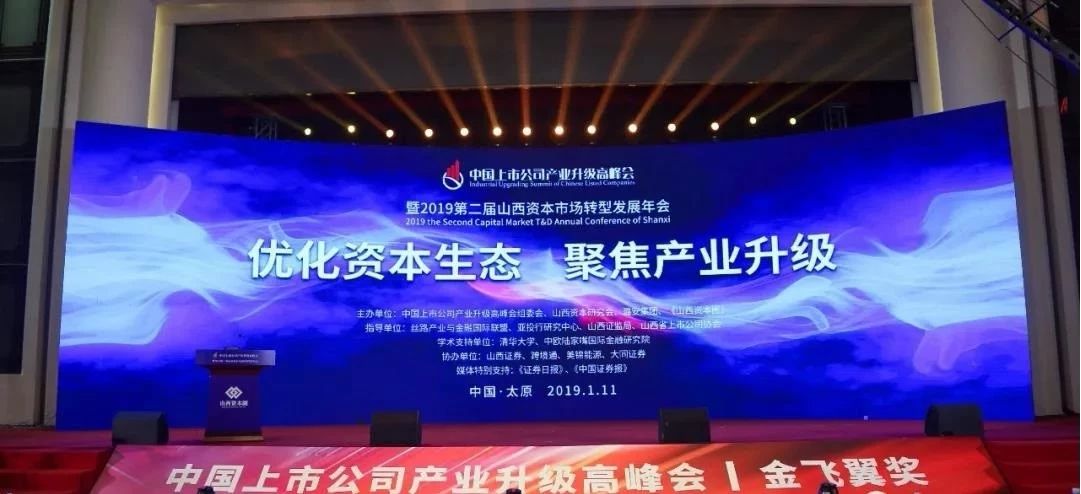 1月11日,由中國上市公司產業(yè)升級高峰會組委會、山西資本研究會、財經(jīng)新媒體《山西資本圈》聯(lián)合潞安集團共同主辦——中國上市公司產業(yè)升級高峰會暨2019第二屆屆山西資本市場轉型發(fā)展年會在太原成功舉辦。